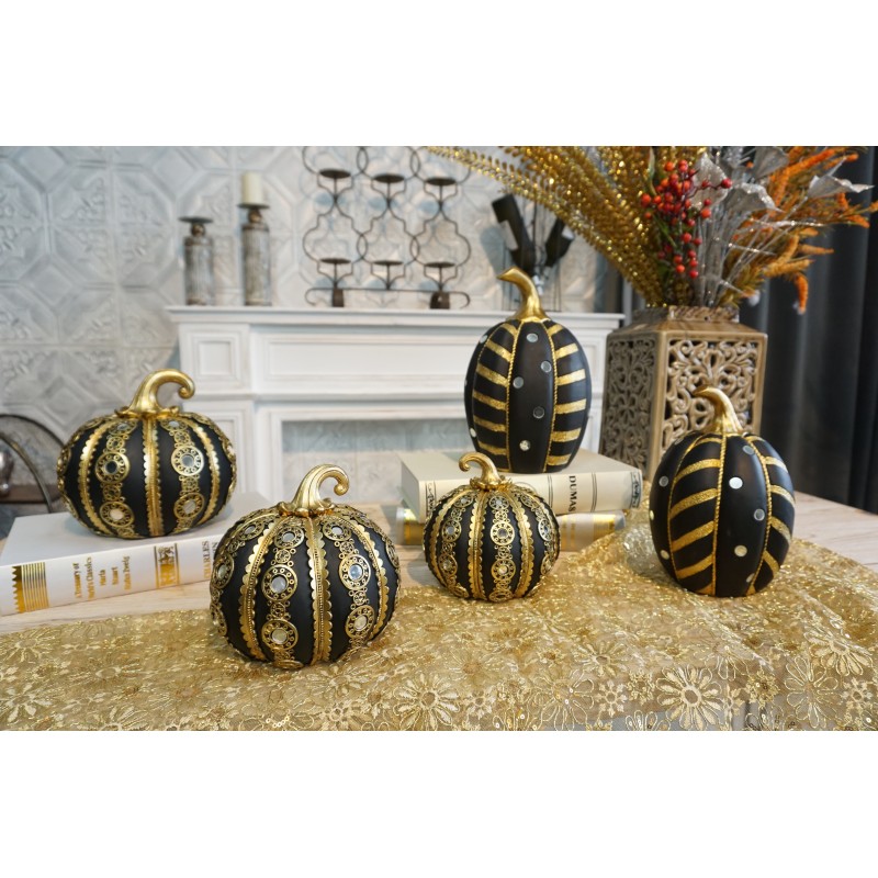 Διακοσμητική Πολυεστερική Κολοκύθα Μαύρη -Χρυσή 13.5x13.5x14cm