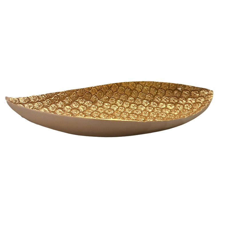 Διακοσμητική  Λευκή-Χρυσή από πολυεστέρα πιατέλα φύλλο 45x17.5x7cm.