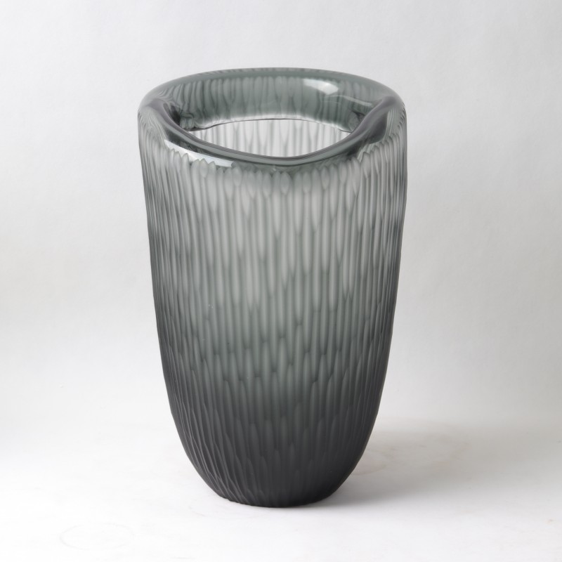Διακοσμητικό Γυάλινο Πράσινο Βάζο Ραβδωτό 21x20x31.5cm.