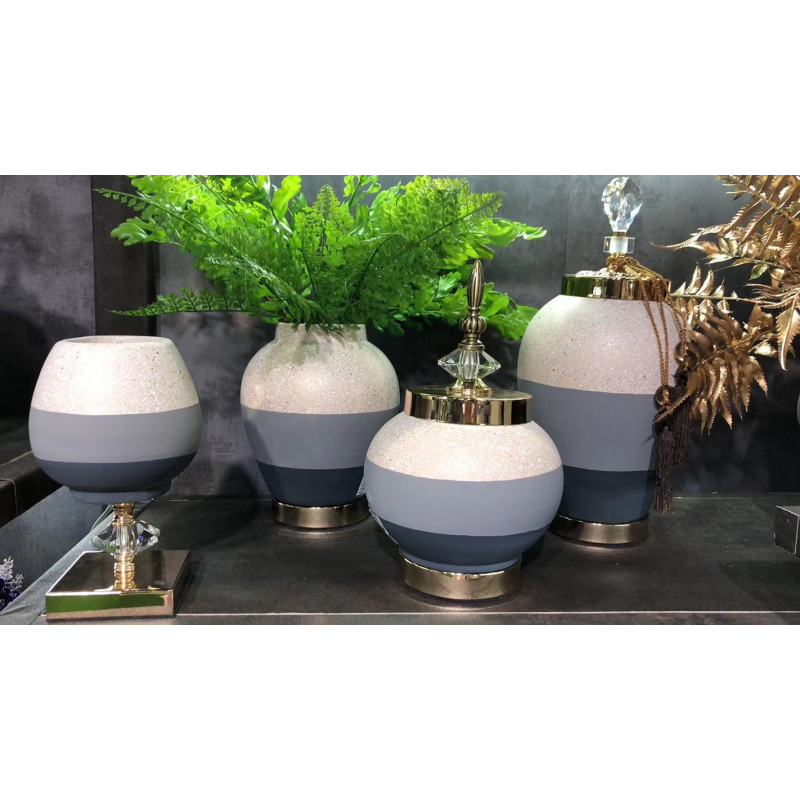 Κεραμικό Τζαρ Στρόγγυλο Ασημί/Ζαχαρί/Γκρί Με Μεταλλικό Καπάκι Με Διακοσμητική Φούντα 18x18x34εκ.