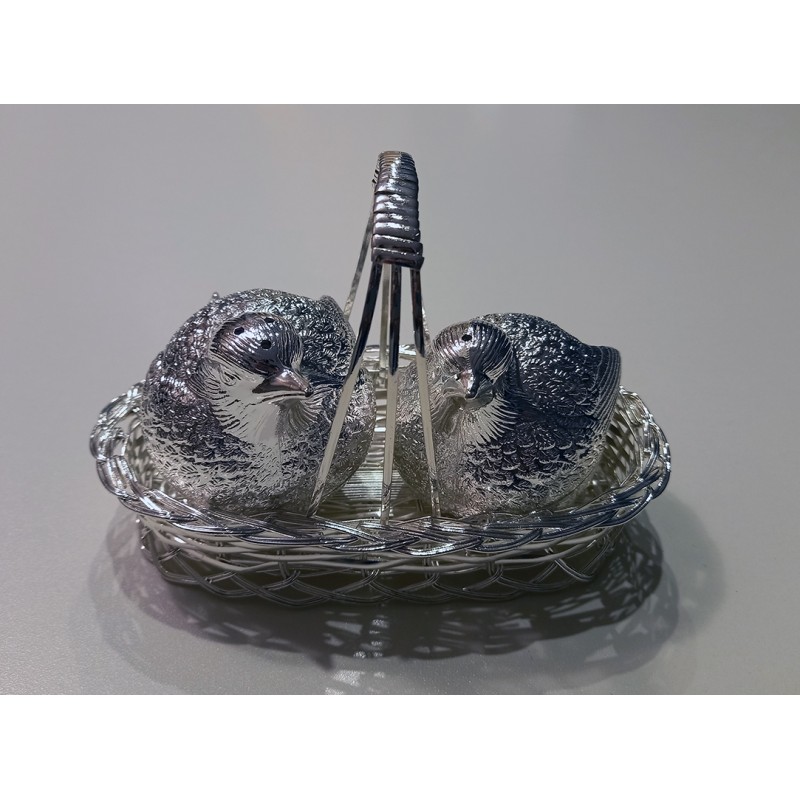 Επάργυρο σετ αλατοπίπερο πουλιά σε καλαθάκι 15εκ